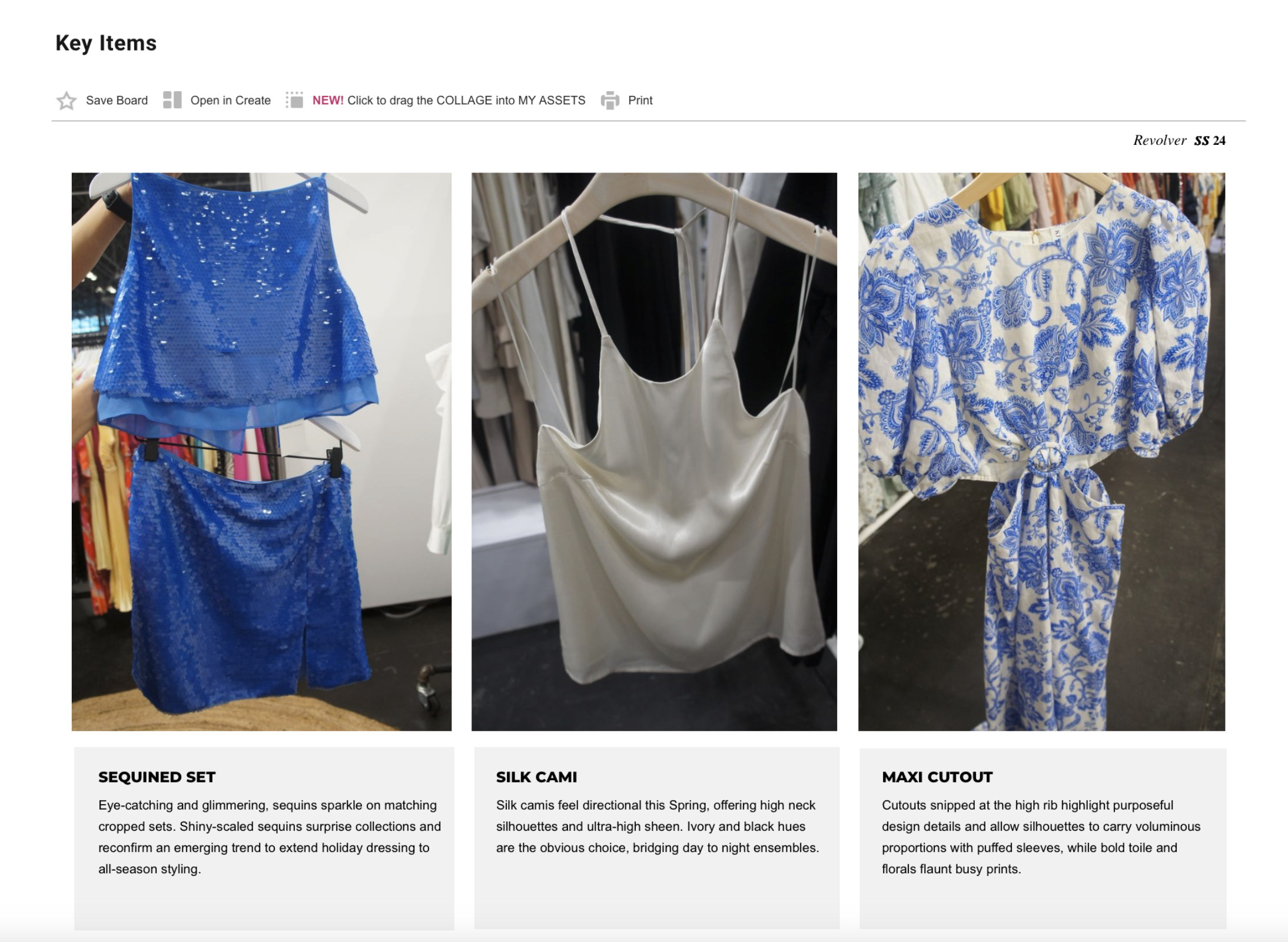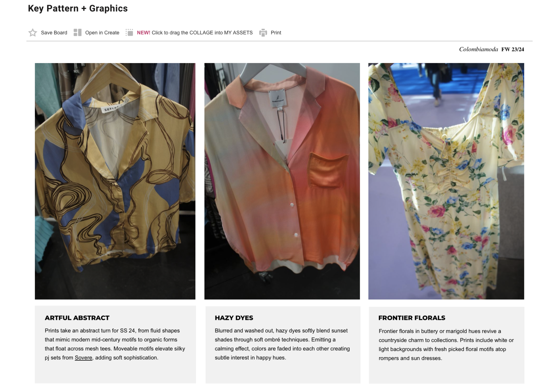 Developed fabrics, prints and trims.